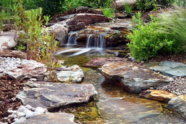 - The pumps are isolated in a vault within the feature, which is covered by gravel and rocks to keep the natural look. This prevents leaves and other matter from entering the pump and jamming it, and also minimizes the chance of the pump harming wildlife.